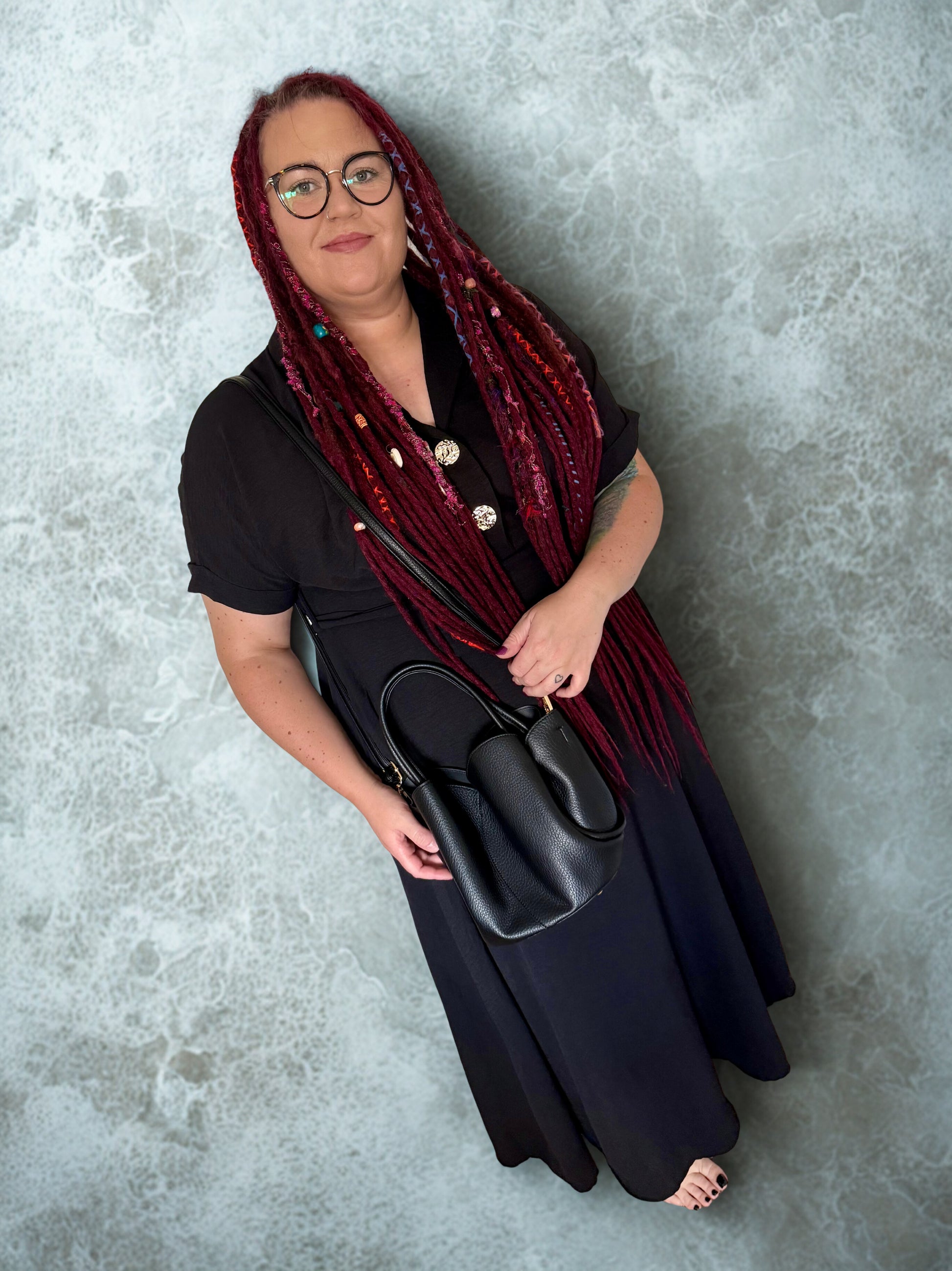 For the ultimate look we pair this with the Large Genevieve Tote Handbag in Black. It gives alternative vibes to the classic, timeless look.