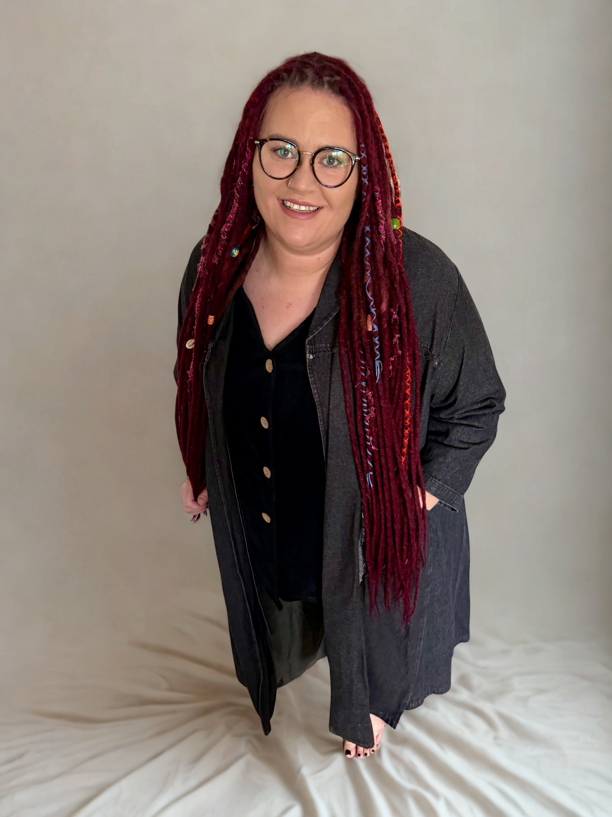 Our Frida denim jacket is a versatile piece perfect for both casual and dressed-up looks. Featuring a relaxed, open fit, it beautifully complements your curves while evoking a chic, French artist aesthetic. Whether paired with your paintbrushes and beret or layered over a bohemian look, it adds effortless style. Be prepared for compliments wherever you go!